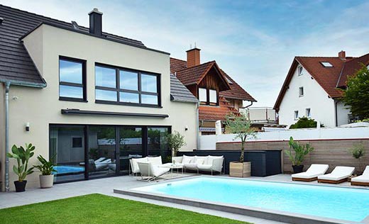 Ein Haus mit Pool in ruhiger Wohngegend.